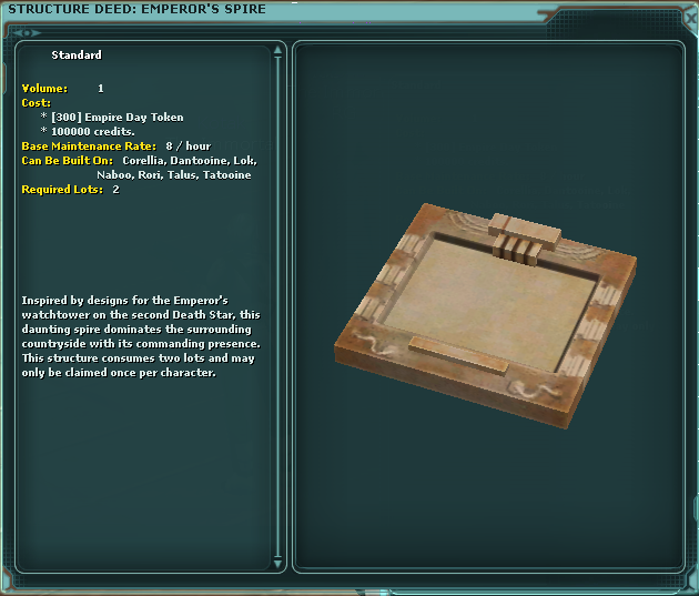 • These two Spire Structures can be purchased during the Empire Day Event.
